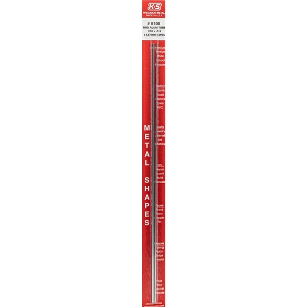 K&S 8100 1/16 x 12″ Aluminium Tube .014 wall 3 pcs
